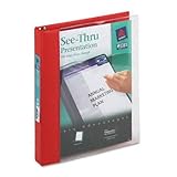 See-Thru Presentation binder is perfect for reports and presentations, offering the convenience of a report cover with the versatility of a three-ring binder. Back cover is made of suede-finish vinyl over sturdy board so rigid back cover holds binder upright on bookshelf. Crystal-clear, heavy gauge vinyl front cover allows title page to read through, creating a custom cover. Back-mounted rings allow pages to lie flat. Binder holds 8-1,2" x 11" documents. Made of 44 percent post-consumer material.Packaged Quantity: 1 EachProduct Type: Presentation BinderBinder Capacity: 1"Sheet Capacity: 175Sheet Standard: LetterSheet Size: 8.50" x 11"Grip Type: RingRings: 3 x Round Shape - 1" CapacityAccessibility: Book FoldApplication,Usage: PresentationReportDocumentFeatures: Back Mount RingColor: RedClear CoverMaterial: VinylRecycled: YesRecycled Content: 52%Post-consumer-waste%: 42%Assembly Required: No Readmore .. .